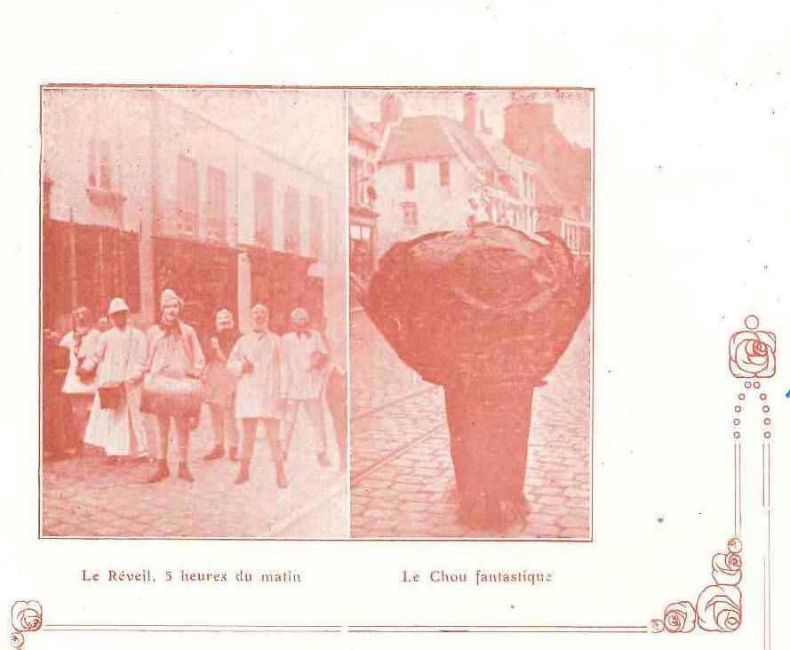 En effet dans cet article du Nord illustré retrouvé cette semaine, il est stipulé que le réveil…démarrait à 5 h du matin et que de drôles de déguisements circulaient dans les rues avec des symboles de la justice  ou encore des choux fantastiques !!!